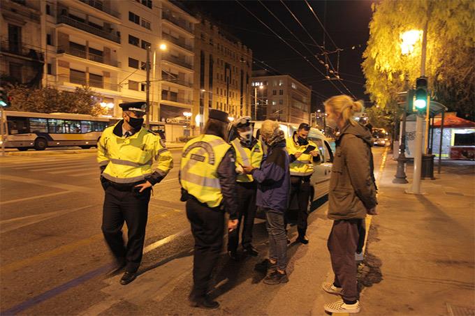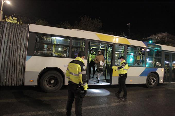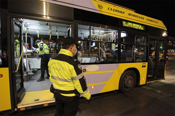 Η αστυνομία σταματά ακόμα και λεωφορεία, ανεβαίνει πάνω, ελέγχει χαρτιά και sms (μετά τις 21.00 μπορείς να είσαι έξω μόνο για επίσκεψη σε γιατρό ή επειδή δουλεύεις, ή για να βγάλεις βόλτα στη γειτονιά τον σκύλο σου), ζητά άδειες παραμονής από όσους δεν είναι Έλληνες, προχωρά ακόμα και σε συλλήψεις. Τα περισσότερα πρόστιμα κόβονται μέσα στα λεωφορεία.