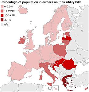 Στον κατάλογο των χωρών οι κάτοικοι των οποίων δεν μπορούν να πληρώσουν τους λογαριασμούς ρεύματος, η Ελλάδα τοποθετείται στην πρώτη θέση με 32%, ενώ ο μέσος όρος της ΕΕ βρίσκεται στο 10%.