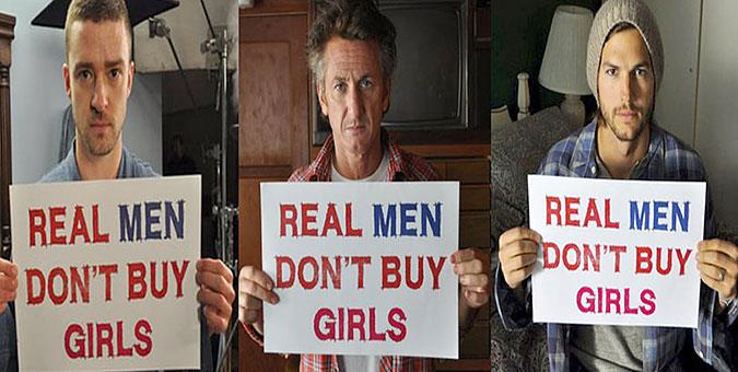 Παράλληλα, οι άνδρες των social media προκάλεσαν την «αναγέννηση» της καμπάνιας με σύνθημα «Real Men don’t buy Girls», που είχε ξεκινήσει προ ολίγων χρόνων με πρωτοβουλία του ζεύγους Ashton Kutcher – Demi Moore. Με κάρτες που αναγράφουν το σύνθημα της καμπάνιας φωτογραφήθηκαν διασημότητες όπως ο Σον Πεν, ο Μπράντλεϊ Κούπερ, ο Τζέραρντ Μπάτλερ και ο Τζάστιν Τίμπερλέικ, ενώ κυκλοφόρησαν και video όπως το παρακάτω για να ενισχύσουν το εγχείρημα εναντίον της εκμετάλλευσης των γυναικών.