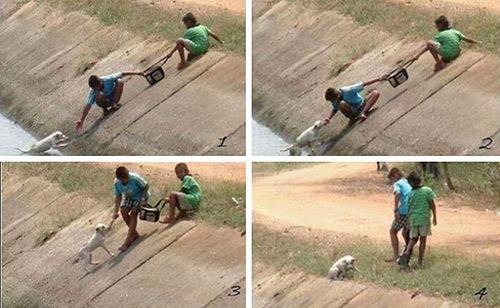 …Αυτά τα δύο αγοράκια που σώζουν ένα σκυλάκι το οποίο είχε πέσει στη ρεματιά.