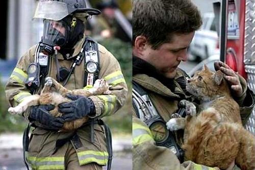 …Αυτός ο πυροσβέστης που χορηγεί οξυγόνο σε γατάκι που έχει μόλις σωθεί από την πυρκαγιά στο σπίτι του.