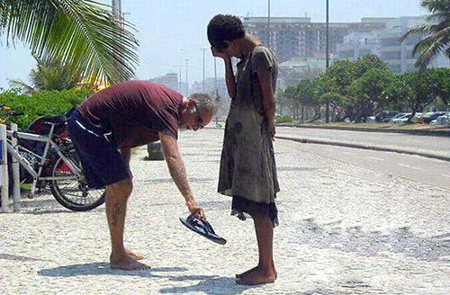 …Αυτός ο άνδρας που δίνει τα παπούτσια του σε ένα άστεγο κορίτσι στο Ρίο ντε Τζανέιρο.