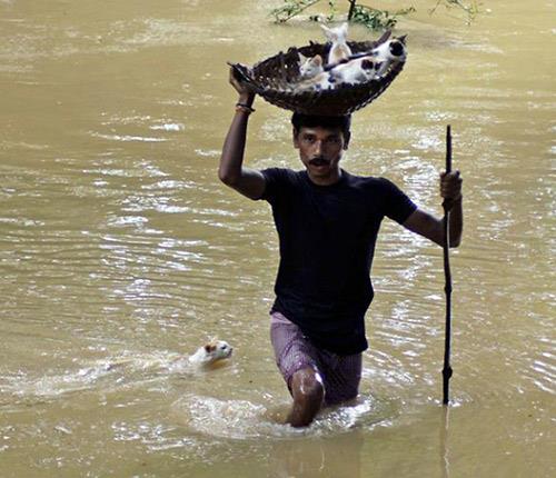 …Αυτός ο χωρικός που σώζει τα γατάκια από τις πλημμύρες στην πόλη Cuttack της Ινδίας, υπό το άγρυπνο βλέμμα της μαμάς τους.