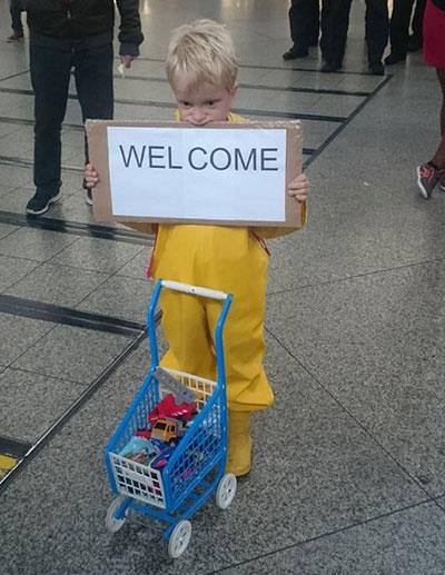 — Manveen Rana (@ManveenRana) September 10, 2015A Danish police officer playing with a Syrian child. #EuropeSaysWelcome #RefugeesWelcome