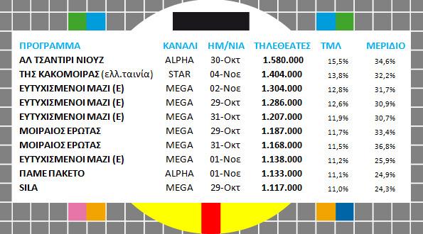 Το Τσαντίρι του Λάκη καβατζώνει μόνιμη θέση στο ρετιρέ της AGB και οι Ράδιο Αρβύλα επιστρέφουν δυναμικά. Με λίγα λόγια, πανηγυρίστε και κοιμηθείτε ήσυχοι: Έχουμε(;) και πάλι επισήμως τηλεοπτική αντιπολίτευση.