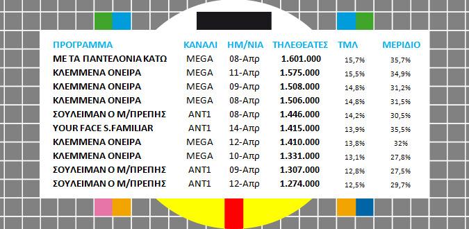 Τα 10 κορυφαία προγράμματα για την εβδομάδα 8-14/4/2013