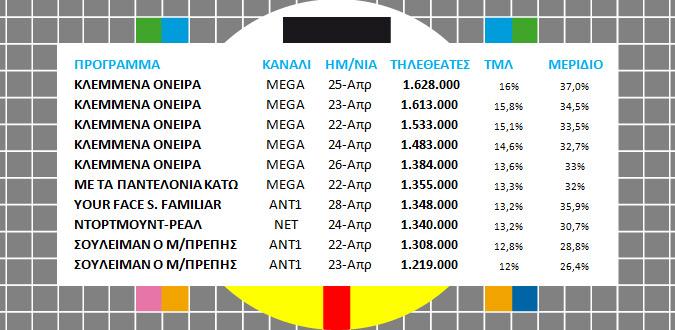 Τα 10 κορυφαία προγράμματα για την εβδομάδα 22-28/4/2013