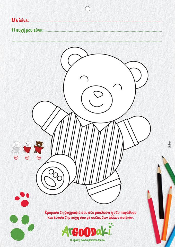 Από το Σάββατο 11 Απριλίου μέχρι και την Κυριακή του Πάσχα 19 Απριλίου, σε κάθε παραγγελία delivery θα περιλαμβάνεται και μια συλλεκτική ζωγραφιά ArGOODaki. Το κάθε παιδί θα μπορεί να χρωματίσει τη ζωγραφιά, να γράψει επάνω τη δική του ευχή και σε μια συμβολική κίνηση να την κρεμάσει στο μπαλκόνι ή στο παράθυρό του. Με αυτό τον τρόπο, οι ευχές όλων των παιδιών ενώνονται σε μια αλυσίδα αγάπης η οποία μεταδίδει ένα θετικό μήνυμα δύναμης σε όλη την πόλη.