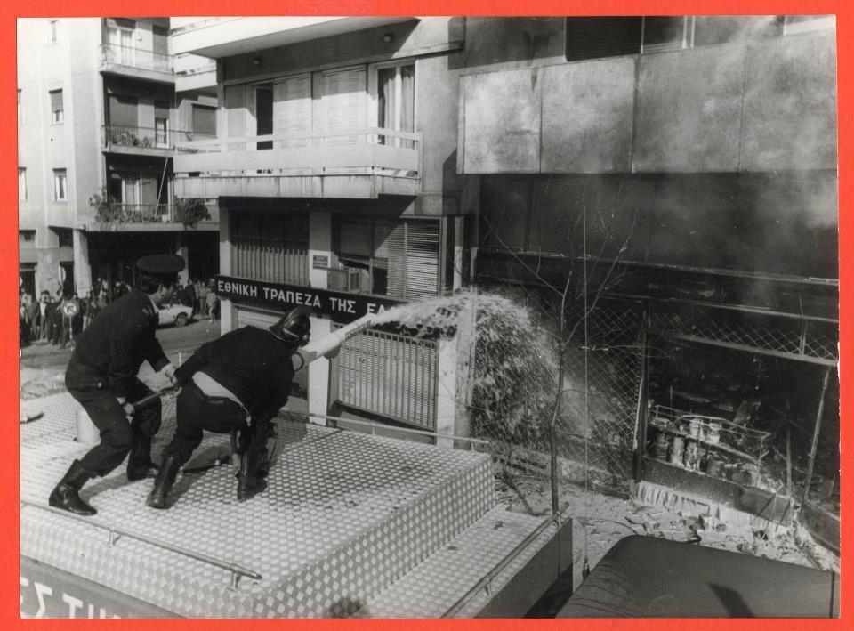 Επιχείρηση κατάσβεσης πυρκαγιάς σε χρωματοπωλείο στη γωνία - Στουρναρη 8 και Σπυρίδωνος, 1982