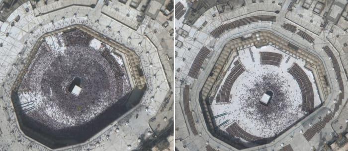 H Μέκκα στις 25 Ιανουαρίου (αριστερά). Η Μέκκα άδεια στις 10 Μαρτίου (δεξιά).