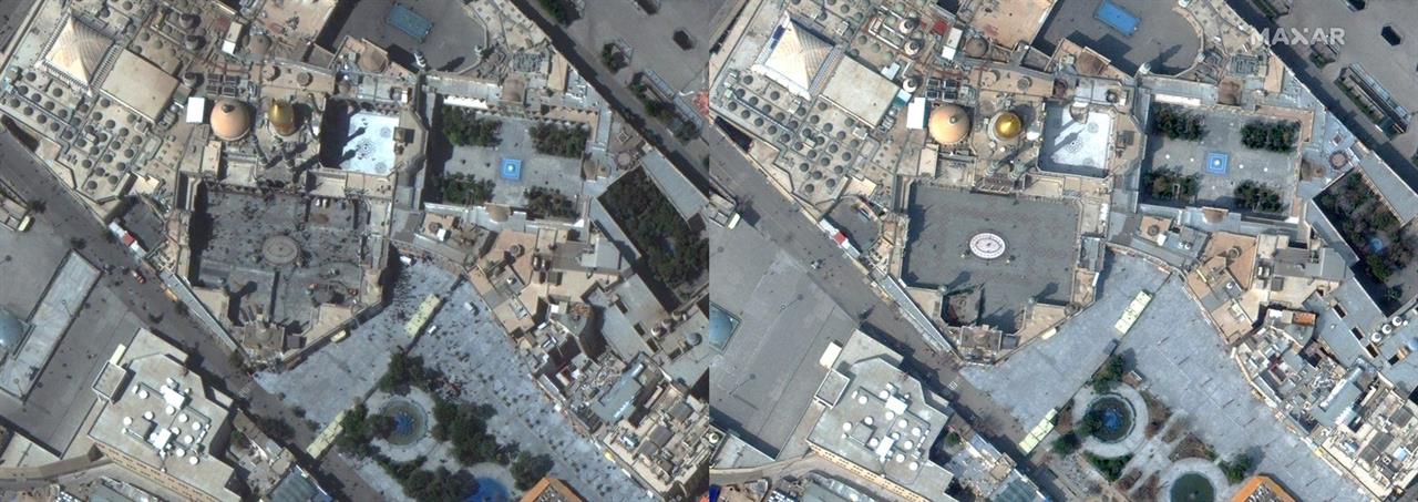 Το ιερό του Hazrat Masumeh στο Qom του Ιράν στις 25 Σεπτεμβρίου 2019 (αριστερά) και την 1η Μαρτίου 2020 (δεξιά).