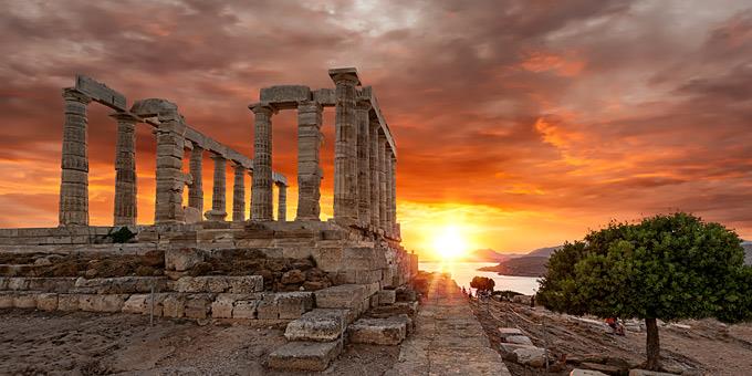 Λίγο πιο κοντά μας, ο Ναός του Ποσειδώνα μοιάζει φτιαγμένος για ηλιοβασιλέματα