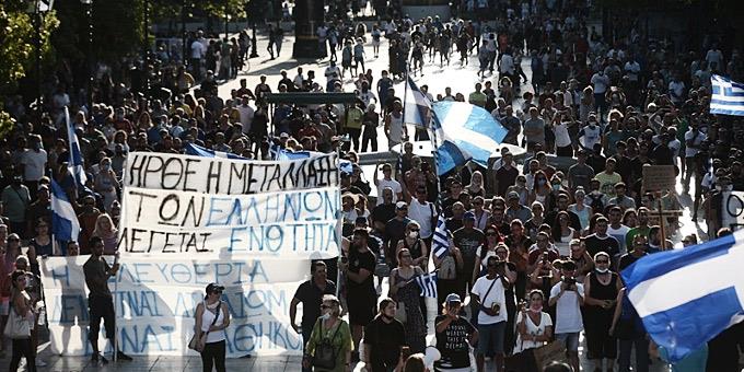 Με σημαίες και πανό οι συγκεντρώσεις κατά των εμβολίων στην Αθήνα
