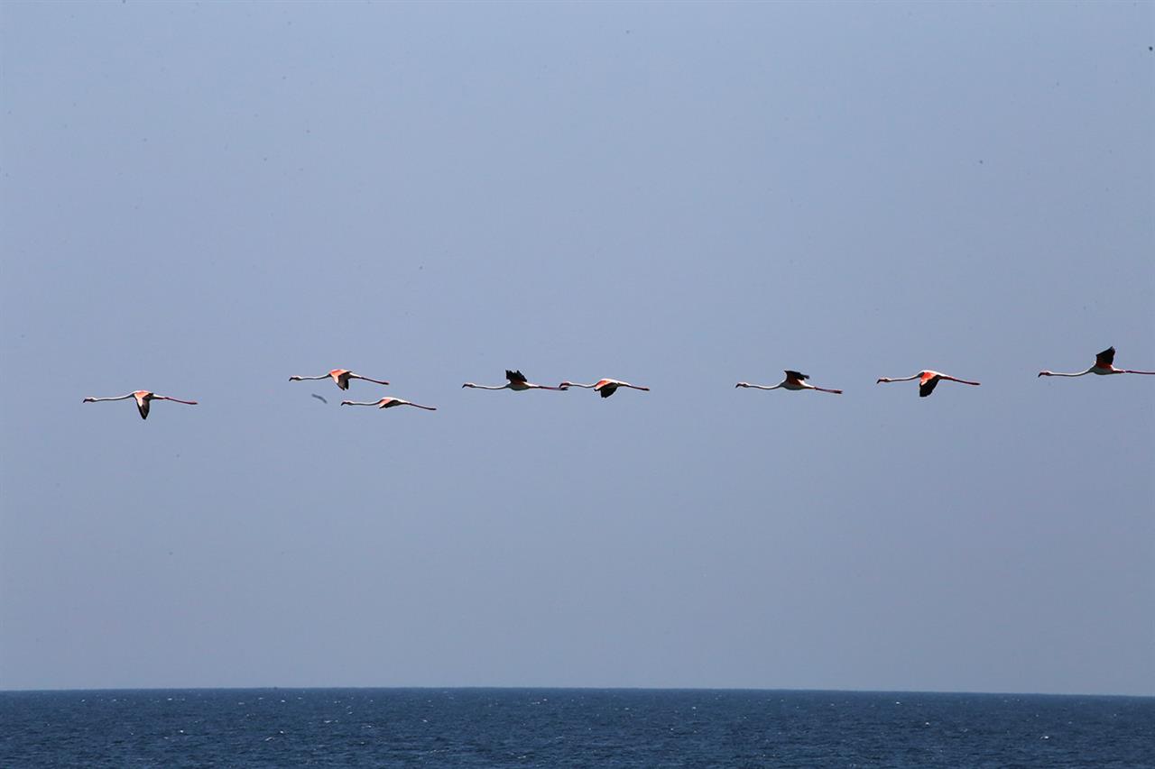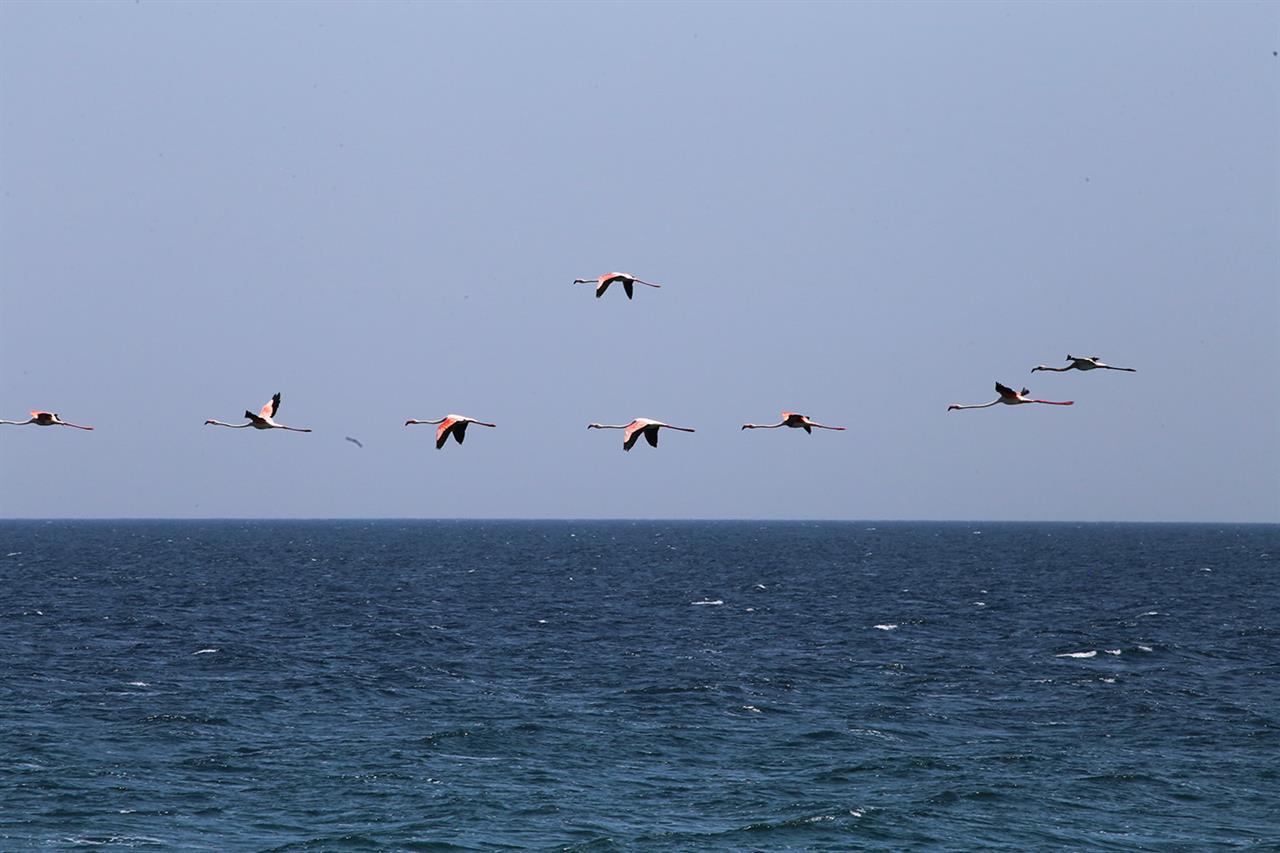 Πανέμορφους επισκέπτες δέχθηκε ο Αγιόκαμπος της Λάρισας μιας και αρκετά φλαμίνγκο πέταξαν πάνω από τα νερά του.