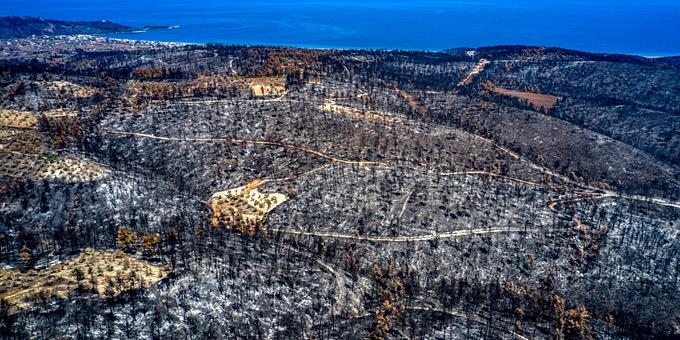 Το μέγεθος της καταστροφής είναι ανυπολόγιστο μιας και πολλές περιοχές στο νησί έχουν καεί ολοσχερώς. Χιλιάδες στρέμματα δάσους, εκατοντάδες ζώα, σπίτια και μαγαζιά, αλλά και δίκτυα και υποδομές έγιναν παρανάλωμα, αφήνοντας πίσω τους θλίψη και πόνο.