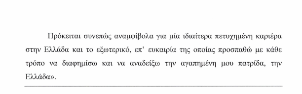 Μετά ταύτα και εις ένδειξη της πρόθεσής μας να άρουμε οποιαδήποτε αναστάτωση και στεναχώρια προεκλήθη εκ του δημοσιεύματος αυτού, αποφασίσαμε την απόσυρσή του και την δημοσίευση αυτούσιου του κειμένου που, κατά την άποψη της σχολιαζόμενης καλλιτέχνιδος, αποτυπώνει την καλλιτεχνική της πορεία και σταδιοδρομία.