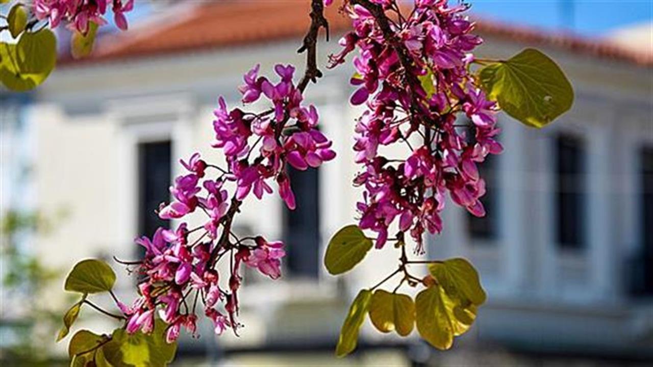 Οι ανθισμένες κουτσουπιές σκορπίζουν τα ροζ ανθάκια τους στους δρόμους της πόλης, διαψεύδοντας πανηγυρικά όποιον λέει ότι στην Αθήνα δεν έχουμε εποχές.