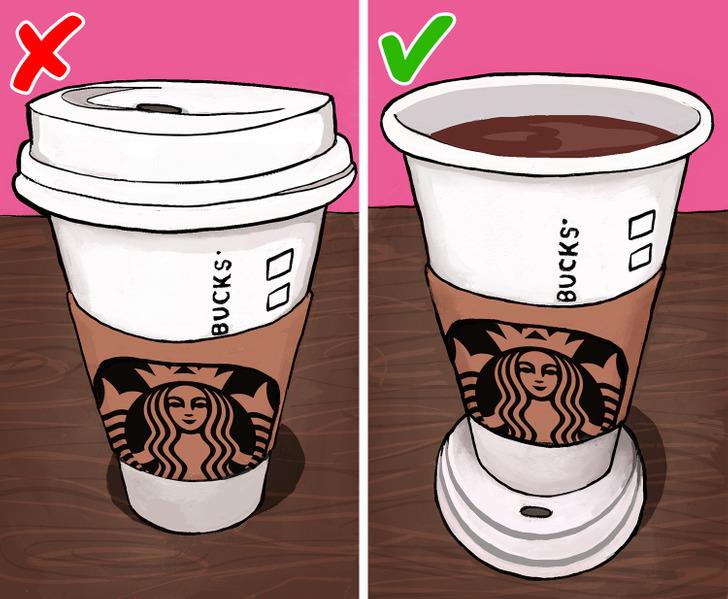 Το ήξερες ότι τα περισσότερα ποτήρια του καφέ που παίρνεις απέξω είναι σχεδιασμένα έτσι ώστε να στέκονται πάνω στα καπάκια τους, τα οποία αφού τα αφαιρέσεις τα χρησιμοποιείς για σουβέρ; Τώρα το ξέρεις.