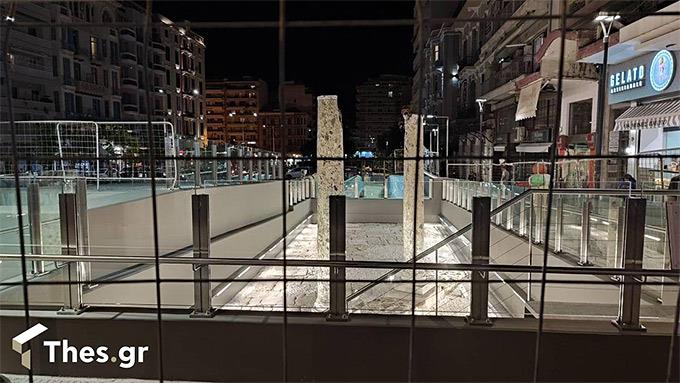 Επανατοποθέτηση έγινε και πάνω από το σταθμό του μετρό, με κολώνες και πετρώματα να είναι εμφανή στους πεζούς στη διασταύρωση Αγίας Σοφίας και Εγνατίας.