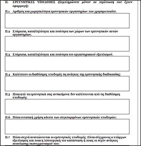 Και υπάρχει και χειρότερο. Το ύφος των 16 αυτών ερωτημάτων δεν παραπέμπει σε ερευνητικό ίδρυμα, αλλά σε Πάροχο Υπηρεσιών Έρευνας, δηλαδή σε μπίζνα. Οι ερωτήσεις του λήμματος Ι.4 για το προσωπικό που απασχολεί ο διδάσκων σε πρόγραμμα έρευνας και όλο το λήμμα ΙΙ (ΕΡΕΥΝΗΤΙΚΕΣ ΥΠΟΔΟΜΕΣ) αρμόζει σε διοικητικό/διαχειριστικό ερωτηματολόγιο μιας επιχείρησης ερευνών που προσπαθεί να απογράψει και να εξορθολογήσει εξοπλισμό, αντικείμενα, προσωπικό και δαπάνες. Αυτό είναι απολύτως θεμιτό για Επιχείρηση Έρευνας (πχ ιδιωτικό αμερικανικό Πανεπιστήμιο, ελληνικό ερευνητικό κέντρο) αλλά είναι τελείως απαράδεκτο για εκπαιδευτικό ίδρυμα.