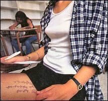 * Η σμίκρυνση. Πατροπαράδοτη τεχνική που πήρε τα πάνω της από την στιγμή που τα φωτοτυπεία προσέφεραν την δυνατότητα σμίκρυνσης στις φωτοτυπίες. Ο φοιτητής έχει τις λιλιπούτειες σημειώσεις πάνω του (παπούτσια, τσέπες, μέσα από τη μπλούζα, στη τσάντα κτλ.) και αντλεί από αυτές όλες τις απαραίτητες πληροφορίες. Σε ένδειξη αλληλεγγύης, πριν παραδώσει το γραπτό του αφήνει επίτηδες τα σκονάκια να πέσουν κάτω από το θρανίο έτσι ώστε να «γυρίσουν» σε όλη την αίθουσα χέρι- χέρι. Οι μερακλήδες, πιθανώς να βιβλιοδετήσουν τα σκονάκια από την προηγούμενη μέρα ή ακόμα και να φτιάξουν σελίδα με περιεχόμενα στο Word.