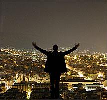 *Η βραδινή ανάβαση μέχρι τον λόφο του Αρείου Πάγου, απέναντι από τον Ιερό Βράχο, για να απολαύσεις την Αθήνα «πιάτο» και να δεις δεκάδες ακόμη «τρελούς» να κάνουν το ίδιο.