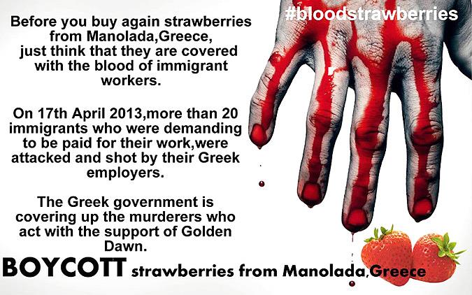 Σοκ έχουν προκαλέσει τα γεγονότα στην Νέα Μανωλάδα, όπου δεκάδες μετανάστες δέχθηκαν τα πυρά καραμπίνας από τους επιστάτες και τον ιδιοκτήτη χωραφιού φράουλας, όταν οι πρώτοι διεκδίκησαν τα δεδουλευμένα τους.