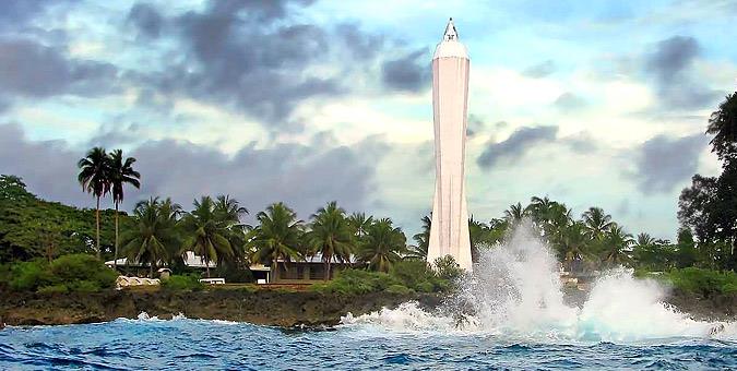 Madang, Νέα Γουινέα. O ύψους 28 μέτρων φάρος κατασκευάστηκε το 1959 ως μνημείο προς τιμήν των φυλάκων που προστάτευαν την ακτή, κατά τον Β' Παγκόσμιο Πόλεμο.