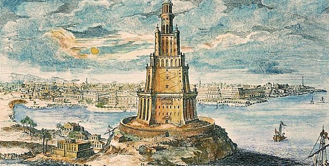 *Ο Φάρος της Αλεξάνδρειας Χτισμένο στο αρχαίο νησάκι Φάρος δίπλα στην Αλεξάνδρεια, από όπου πήρε και το όνομά του, το οικοδόμημα αυτό ορθώθηκε τον 3° αιώνα π.Χ. Υπήρξε το μόνο από τα «Θαύματα» που είχε πρακτική χρήση πέρα από αρχιτεκτονικό μεγαλείο. Για τους ναυτικούς, σήμαινε ασφάλεια στα ταξίδια τους προς το «Μεγάλο Λιμάνι». Για τους αρχιτέκτονες, ήταν ένα από τα ψηλότερα κτίσματα του κόσμου. Για τους επιστήμονες, ήταν ένα μυστηριώδες παιχνίδι με την χρήση του καθρέφτη. Το κάτοπτρο του Φάρου ήταν τέτοιο ώστε το φως που αντανακλούσε μπορούσε να ειδωθεί από 50 χιλιόμετρα μακριά. Ο Φάρος ήταν το τελευταίο από τα έξι «Θαύματα» που καταστράφηκαν – μόνο αρχαίες μαρτυρίες μένουν πια, που περιγράφουν την μαρμάρινη πρόσοψή του, το άγαλμα του Ποσειδώνα στην κορυφή του και την λεπτεπίλεπτη δουλειά του Σωκράτη του Κνίδιου που είχε αναλάβει την οικοδόμησή του. Καταστράφηκε τον 14° αιώνα εξαιτίας ενός σεισμού.