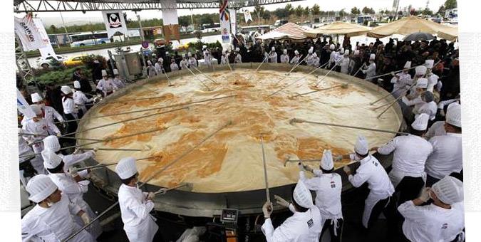 Ο Συνεταιρισμός αβγοπαραγωγών της Τουρκίας βάλθηκε το 2010 να σπάσει το ρεκόρ της μεγαλύτερης ομελέτας στον κόσμο, το οποίο κατείχε μια ομελέτα τρεισίμισι τόνων, τηγανισμένη στο Cape Town το 2009. Οι τούρκοι μάγειρες κατάφεραν το 2010 να… διπλασιάσουν το ρεκόρ, ετοιμάζοντας αυτή την ομελέτα που ζύγιζε 6 τόνους.