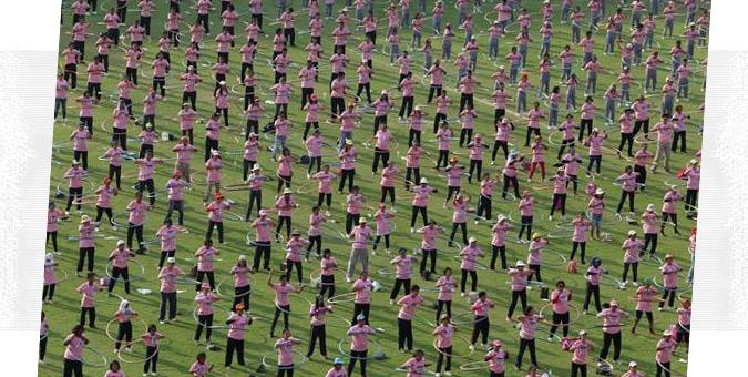 Στο στιγμιότυπο που βλέπετε, 4.483 άνθρωποι επιδόθηκαν ταυτόχρονα σε… χούλα χουπ επί επτά λεπτά, σπάζοντας το προηγούμενο ρεκόρ και περνώντας ταυτόχρονα ένα σημαντικό μήνυμα: «Ασκηθείτε περισσότερο» ήταν το σύνθημα της εκδήλωσης, που διοργανώθηκε μάλιστα από το υπουργείο δημόσιας υγείας της Ταϋλάνδης.