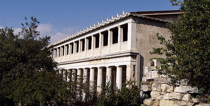 4α. Η Στοά του Αττάλου χτίστηκε με δωρεά του ομώνυμου ηγεμόνα της Περγάμου στα ελληνιστικά χρόνια και αποτέλεσε τον κυριότερο τόπο συγκέντρωσης των αρχαίων Αθηναίων στην Αγορά, καθώς όχι μόνο ήταν το μακρύτερο σκεπαστό κτίριο της εποχής του, αλλά φιλοξενούσε και δεκάδες «καταστήματα», καταστώντας το ένα από τα πρώτα, αν όχι το πρώτο, εμπορικό κέντρο της αρχαιότητας, με την σύγχρονη σημασία της έννοιας. Μάλιστα, ήταν το πρώτο κτίριο της Ελλάδας που διάθετε… β’ όροφο.