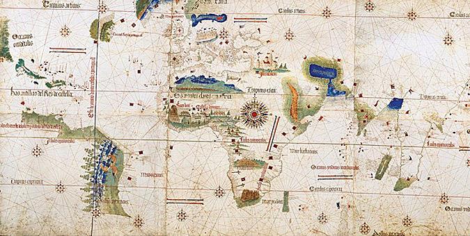 Την ίδια περίοδο εμφανίζεται και ο χάρτης Cantino, που καταγράφει τις πορτογαλικές ανακαλύψεις σε Ανατολή και Δύση, όπως τα νησιά της Καραϊβικής, τις ακτές της Φλόριδας και τμήμα των βραζιλιανικών ακτών.