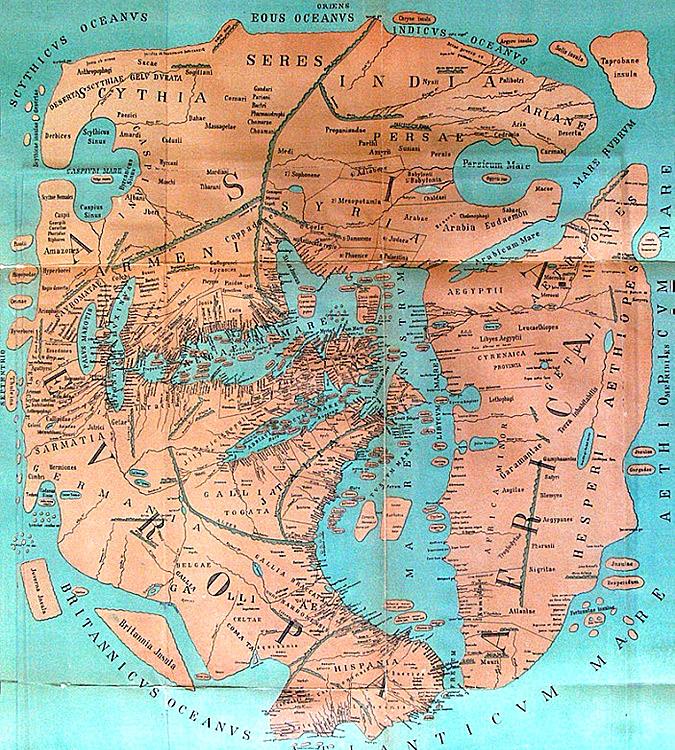 1ος αιώνας μ.Χ. Κι εκεί που τα πράγματα φαίνονταν να μπαίνουν σε μια σειρά στο μυαλό των χαρτογράφων, να μια παράξενη αποτύπωση του ρωμαίου γεωγράφου Πομπόνιου, ο οποίος διαίρεσε την Γη σε πέντε ζώνες, εκ των οποίων μόνο οι δύο θεωρούνταν κατοικίσιμες. Θεώρησε επίσης όλες τις θάλασσες… συγκοινωνούντα δοχεία, από την Κασπία ως την Ερυθρά Θάλασσα και από τον Περσικό Κόλπο ως τον Βόρειο Ωκεανό.