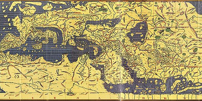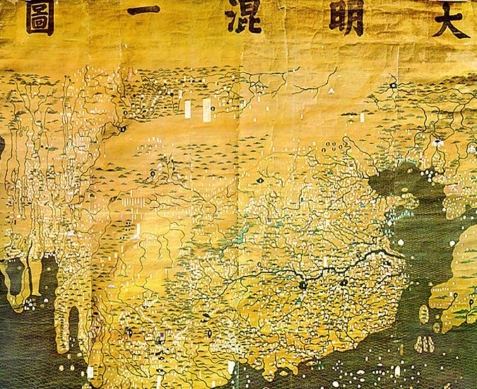 14ος αιώνας μ.Χ. Τι έλειπε από την εξίσωση όλους αυτούς τους αιώνες, πέρα από τις ηπείρους που δεν είχαν ακόμη ανακαλυφθεί; Η Κίνα, η οποία είχε εν τω μεταξύ δημιουργήσει τους δικούς της χάρτες, που φυσικά θέτουν την χώρα τους στο κέντρο του κόσμου, ενώ η Ευρώπη εμφανίζεται μικρή και συμπιεσμένη στην άκρη. Αποτυπώνεται επίσης η αφρικανική χερσόνησος, μέχρι και το ακρωτήρι της Καλής Ελπίδας, που οι Ευρωπαίοι δεν είχαν ακόμη επισκεφθεί ποτέ.