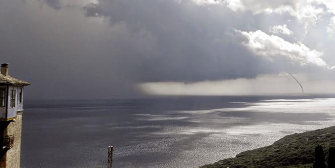 Διπλός ανεμοστρόβιλος «χτύπησε» το Άγιο Όρος – δείτε τις φωτογραφίες που τράβηξε ένας από τους μοναχούς.