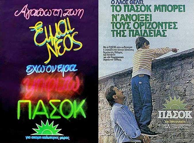 Αφίσες του ΕΑΜ, διαφημίσεις με celebrities της εποχής, προεκλογικές αφίσες του ΠΑΣΟΚ και της Νέας Δημοκρατίας. Δείτε 18 retro… επιτοίχιες φωτογραφίες.
