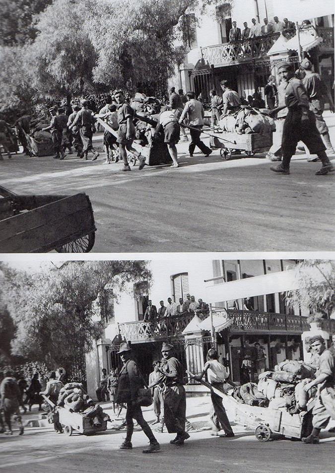 Ο ιταλικός στρατός κατοχής εγκαταλείπει την Αθήνα, αφοπλισμένος από τους Γερμανούς. Σεπτέμβριος 1943. Μετά από την συνθηκολόγηση της Ιταλίας με τους Συμμάχους στις 8 Σεπτεμβρίου 1943, ο Ιταλικός στρατός αφοπλίζεται από τους πρώην συμμάχους τους, Γερμανούς. Στη διάρκεια της Κατοχής, στην Αττική, οι Ιταλοί ασκούσαν από κοινού με τους Γερμανούς τη διοίκηση στην Αθήνα και στον Πειραιά. Φωτογραφίες από την οδό Ηρώδου Αττικού, μπροστά από το κτήριο της Ανακτορικής Φρουράς, κατά την αναχώρησή τους. Τα στιγμιότυπα αυτά φωτογράφησε η Λιλή Θεοτοκά, το Σεπτέμβριο του 1943. Φωτογραφικό Αρχείο Εθνικού Ιστορικού Μουσείου.