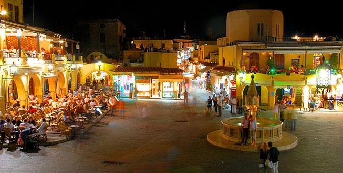 …η χαλαρή αίσθηση του νυχτερινού ποτού με το μαγιό στην πλατεία του Νησιού, όπως αυτή εδώ η πλατεία της Ρόδου