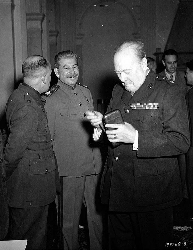 Ο Στάλιν και ο Τσώρτσιλ στο Livadia Palace κατά τη διάρκεια της διάσκεψης της Γιάλτας, Φεβρουάριος 1945.