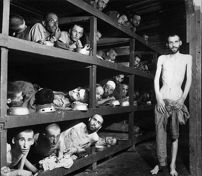 Κρατούμενοι στο Στρατόπεδο Συγκέντρωσης Μπούχενβαλντ της Γερμανίας. 16 Απριλίου 1945.