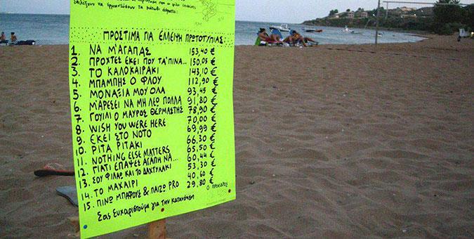Καλοκαιράκι. Διακοπές. Βουτιές. Παραλία. Ας σταθούμε στην τελευταία: ένας μικρόκοσμος της ελληνικής κοινωνίας απλώνεται σε αρκετά τετραγωνικά μέτρα αμμουδιάς φέρνοντάς μας αντιμέτωπους με όλες τις παθογένειές της.