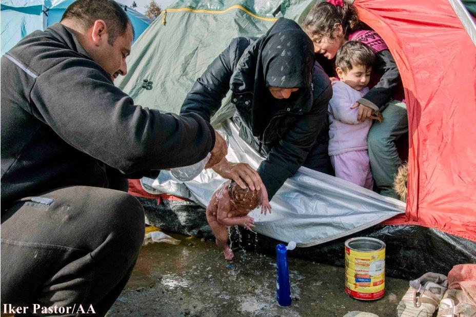 Σε αυτό το σκηνικό, μέσα στις λάσπες, σε μια σκηνή στον καταυλισμό της Ειδομένης, ο φωτογραφικός φακός βρέθηκε την Πέμπτη μπροστά στο θαύμα της ζωής: Την γέννηση ενός βρέφους από μία πρόσφυγα.