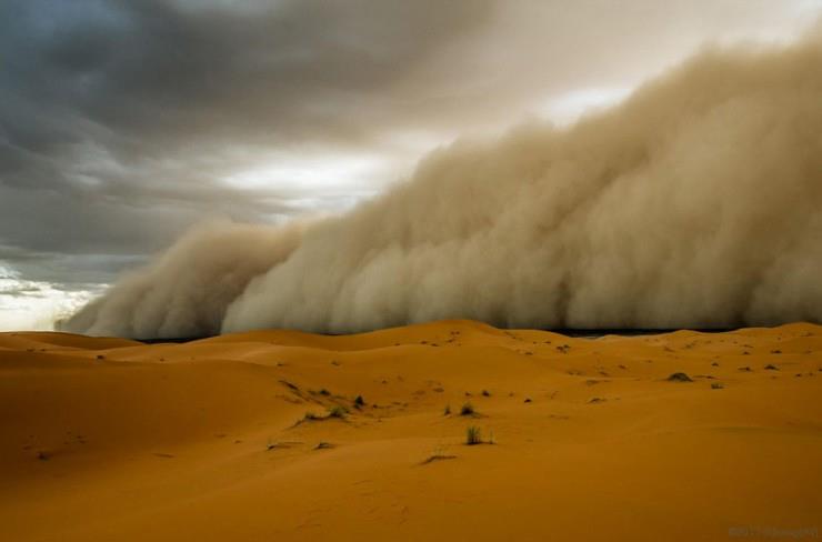 Μια αμμοθύελλα ξεσπά στη μαροκινή Σαχάρα και η χρυσαφένια έκταση σε λίγα δευτερόλεπτα θα καλυφθεί από ένα χωμάτινο τσουνάμι.