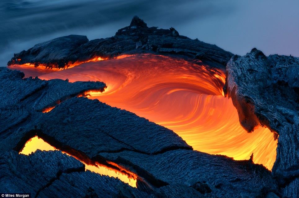 Το Kilauea, ένα από τα πιο ενεργά ηφαίστεια του πλανήτη, βρίσκεται στη Χαβάη και εδώ το βλέπετε να… ξερνά ωκεανούς λάβας λίγο πριν την αυγή.