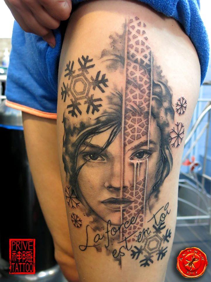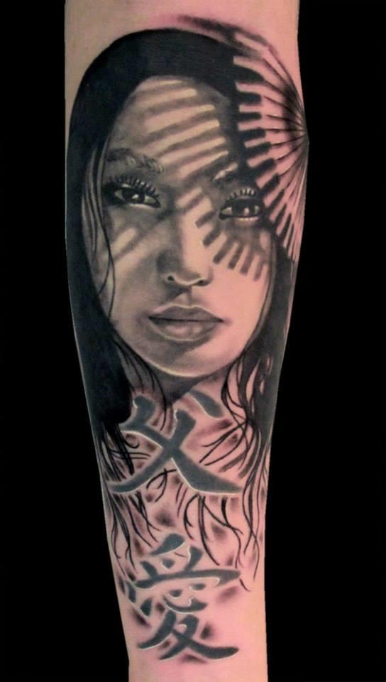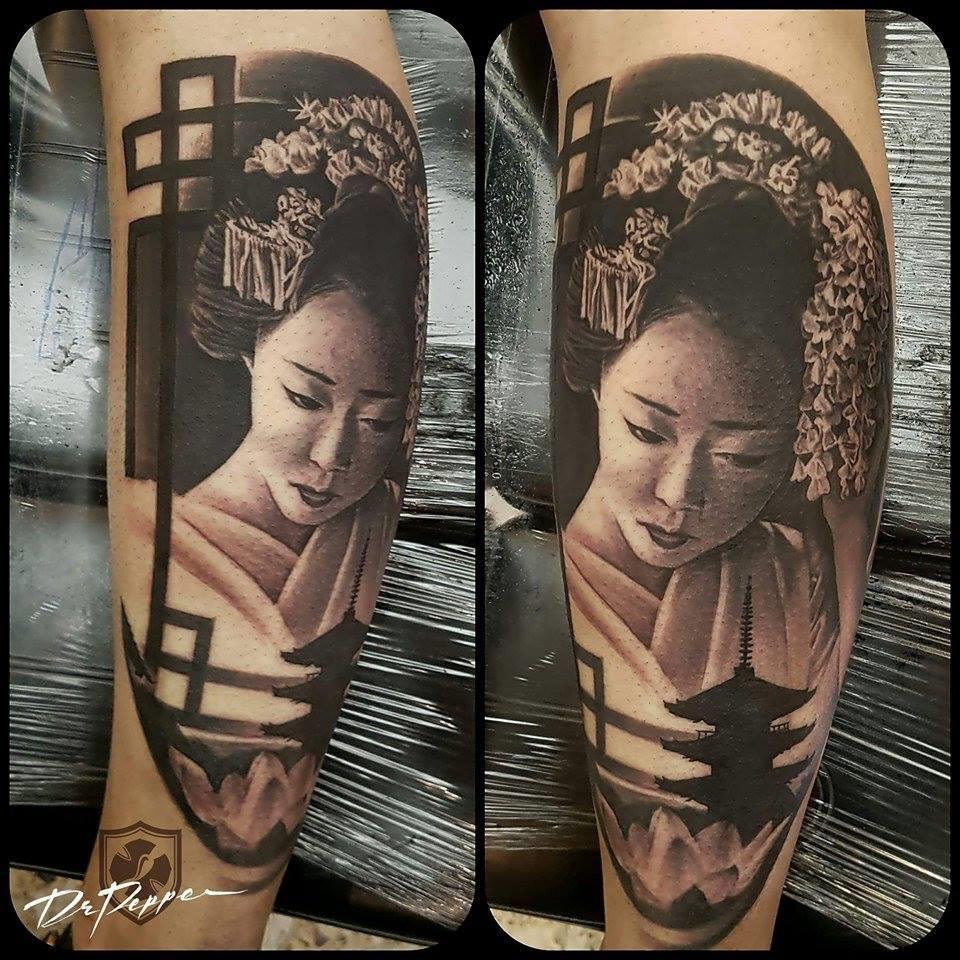Ρεαλιστικό πορτραίτο γκεισας από τον Dr. Pepper του DrPepper Tattoo