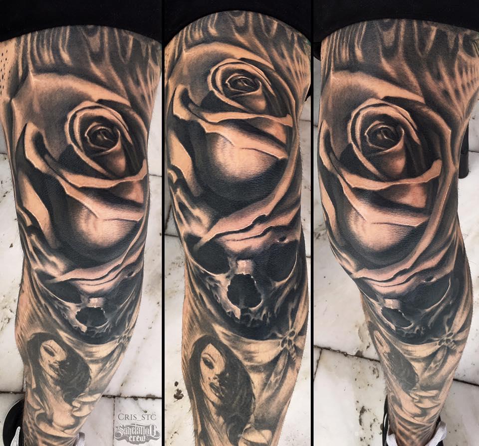 Τριαντάφυλλο με νεκροκεφαλή του Cris του Sake Tattoo Crew