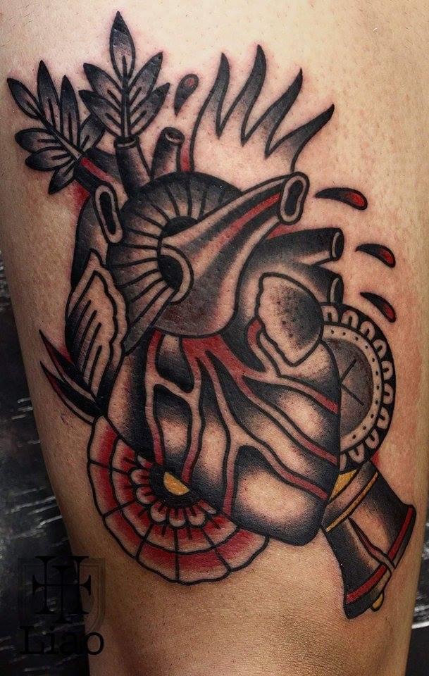 Old school καρδιά με λουλούδια από τον Liao του DrPepper Tattoo