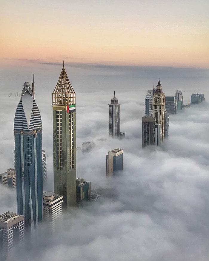 Τα πλάνα που τράβηξε από τον κορυφή ενός πύργου στην πόλη είναι… ανεκτίμητης αξίας και μετρούν κάποια εκατομμύρια views στο Instagram του. Ο πύργος αυτός τυγχάνει να είναι και ο μεγαλύτερος του κόσμου (Burj Khalifa) και οι φωτογραφίες από την κορυφή του θυμίζουν ταινία επιστημονικής φαντασίας.