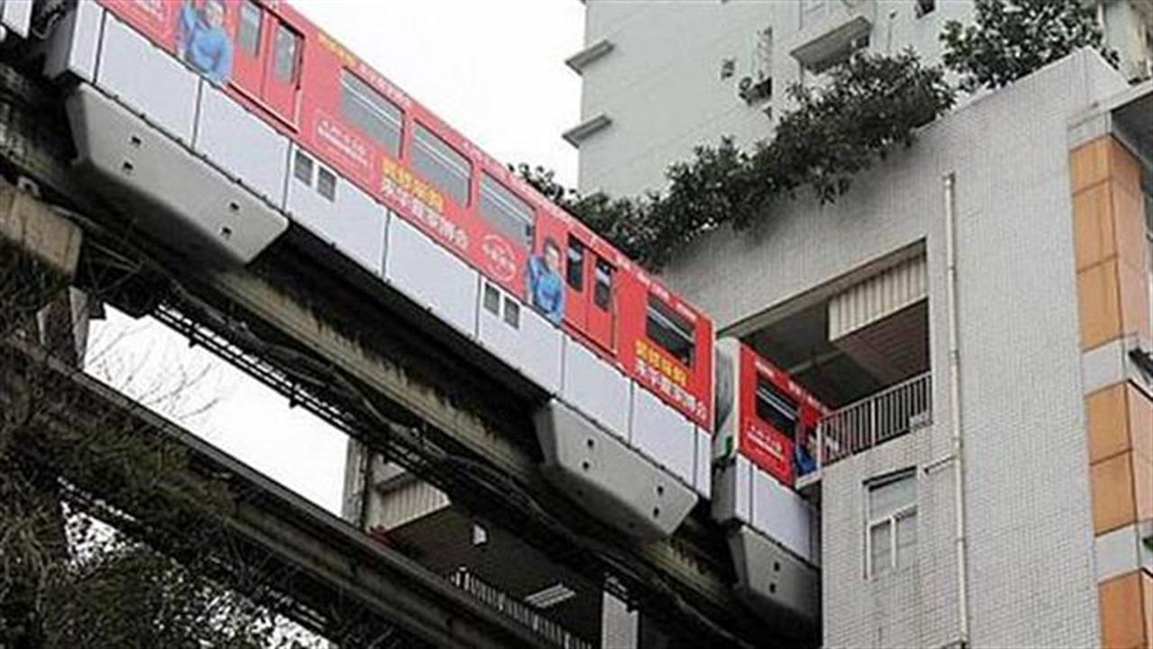 Πρόκειται για την γραμμή 2 του μετρό της πόλης Τσονγκινγκ στην νοτιοδυτική Κίνα. Οι ιθύνοντες των υπέργειων γραμμών του τοπικού μετρό σκέφτηκαν να μην παρακάμψουν το πρόβλημα μιας μεγάλης πολυκατοικίας 19 ορόφων που βρέθηκε στον δρόμο της γραμμής, αλλά να περάσουν… από μέσα του.